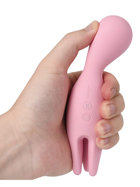 指先でくすぐるように回転するローターと、パワフルなバイブレーション刺激を楽しめる電マが一体化したラブグッズ。