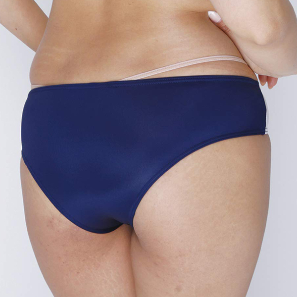 肌への密着感が心地いいストレッチ素材を使用した日本製の体操服ブルマ(ネイビー)。