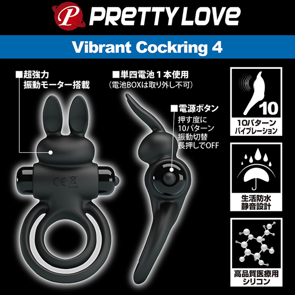 メディカルグレードシリコンの柔らかリングが根元からギュッと締め付け!敏感なムスコの持続力UPとともに、超強力モーターを搭載したウサギ型のヘッドが10パターンの振動でパートナーを刺激する♪生活防水&静音設計、電池式(単4電池×1本使用)