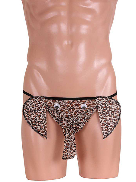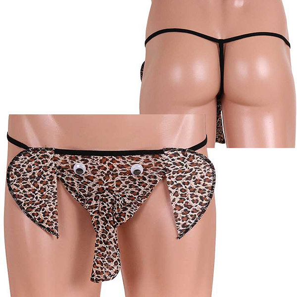 透け感のあるパワーネットと光沢感のあるサテン生地のコラボで可愛いゾウ!バックスタイルはGストリングで超セクシー♪インパクト大のメンズパンツで主役級の存在感は間違いなし!お洒落なアニマル柄でナイトライフを楽しんじゃおう♪