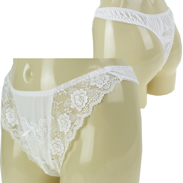 > 3Lサイズ 光沢ストレッチレースポケット付きTバック ホワイト