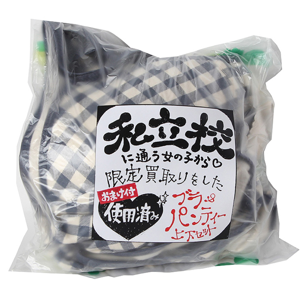 女子学生さんから買い取った匂いフェチ興奮のオマケ付き使用済み下着上下セット。