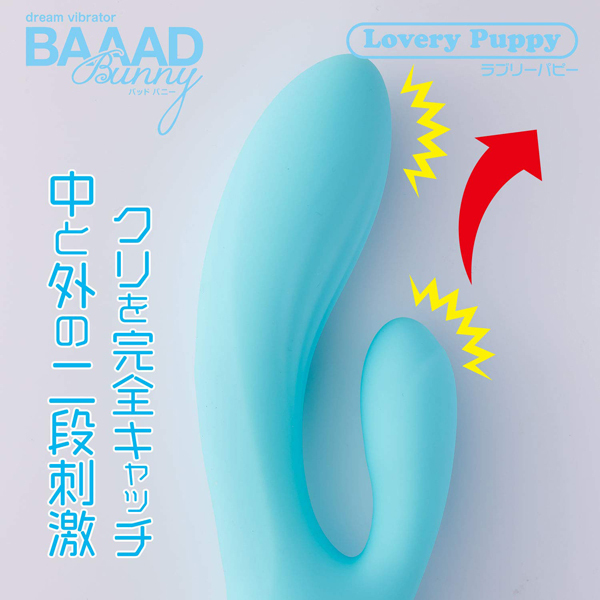 初心者さんにも最適な可愛い「バッドバニー」シリーズより、大きな面でクリを刺激するUSB充電式バイブ「ラブリーパピー」。