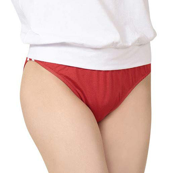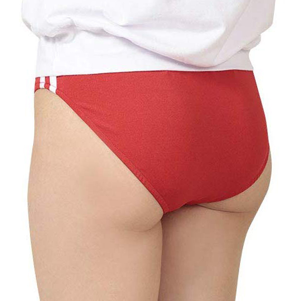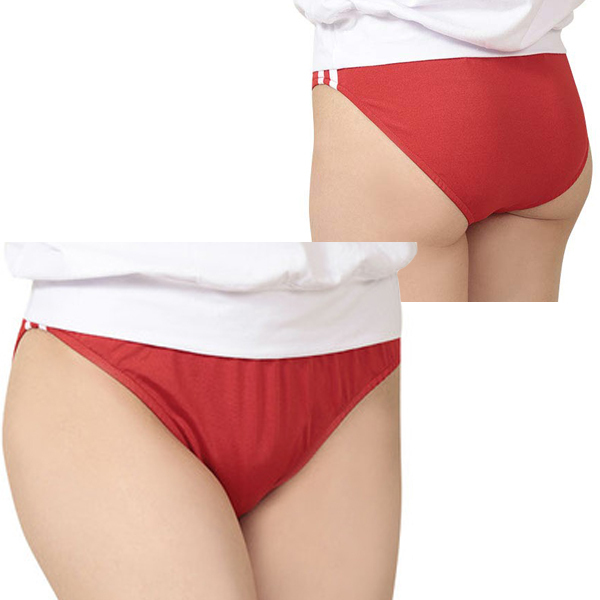 サイドには1cmの白ラインが2本施された本格派デザイン!履き心地抜群のちょうどいいフィット感でスクール時代の懐かしい気持ちを沸き立たせてくれます♪深めに入ったハイレグカットで美脚を演出!ウエストはゴム入りで伸縮性あり。