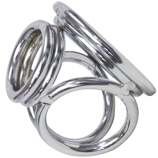 男性器の根元3箇所を程よく圧迫!男性補助をするだけでなく拘束感も味わえるメタル製のコックリング。