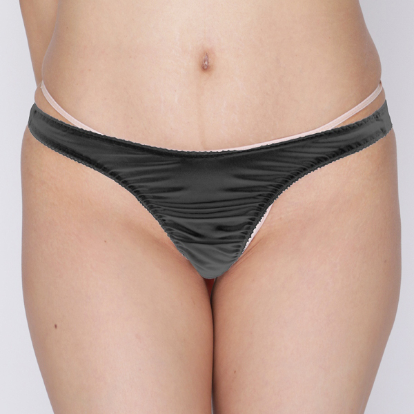 美しく滑らかな光沢で魅了する無地の日本製Tバック(黒)。