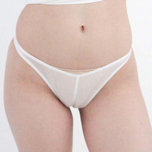 縦線の食い込みに注目必至!極薄シースルー生地の日本製ハイレグハーフバック(白)。