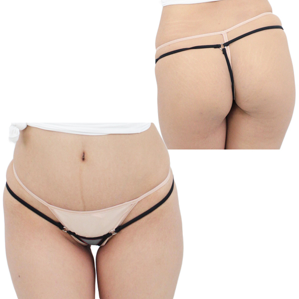 紐の食い込みと素肌が透けて見えるスケスケ素材で過激に魅せる!