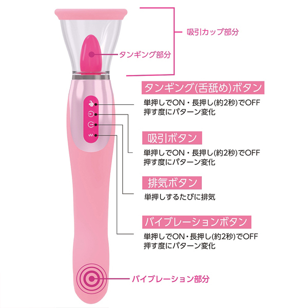 吸引機能はやさしく吸われたり舐められるといったリアルなフィーリングが楽しめて、カップはニップル用、クリ用と使い分けが可能。