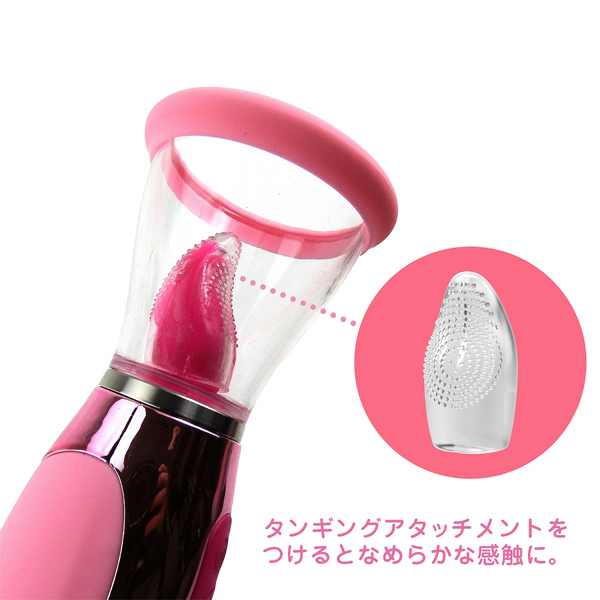 吸引3段階×本格タンギング7種類×振動パターン10種類搭載!個別に楽しんでも良し、吸いながら舐めるといった組み合わせも可能で、舌にアタッチメントを付ければ滑らかな質感を味わうことも◎素材は肌に優しい高級シリコンを採用。
