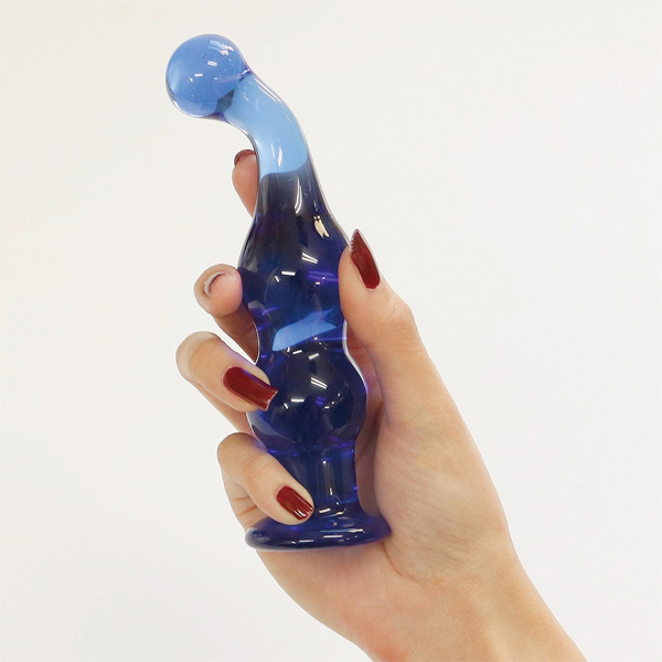 丸みを帯び、繋ぎ目のない芸術的なフォルムが美しいガラス製ディルド。