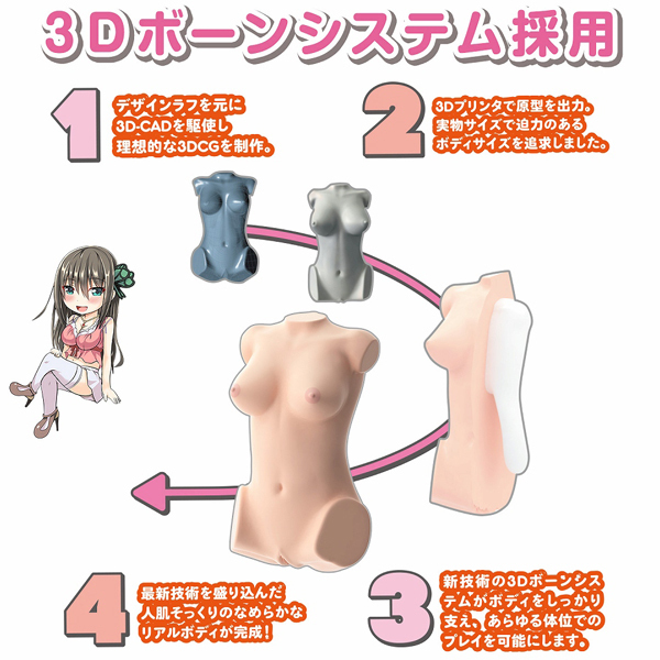 滑らかな肌にはDNAシルクスキン2を採用!内部は二層構造設計で、抜群の肉感と挿入感を実現した2穴式のヒダイボ構造♪中には骨格が内蔵されているため様々な体位でのプレイが可能!程よく肉づいたバスト、繊細なくびれ、細かに作り込まれた挿入口など造形美にこだわった据え置き型オナホです。
