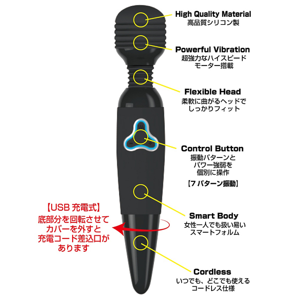 超強力ハイスピードモーターを搭載した、コードレスでも使えるUSB充電式のハイパワー電マ。