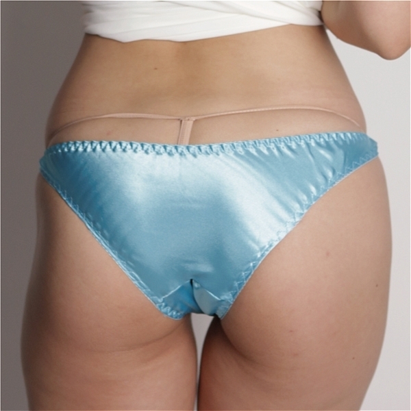 光沢サテン生地の股ワレフルバック ターコイズ