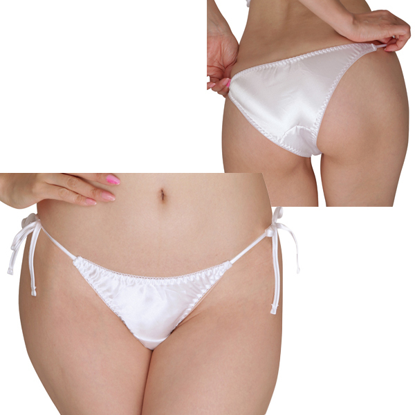 > 光沢サテン脇紐フルバック 2Lサイズ ホワイト