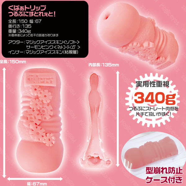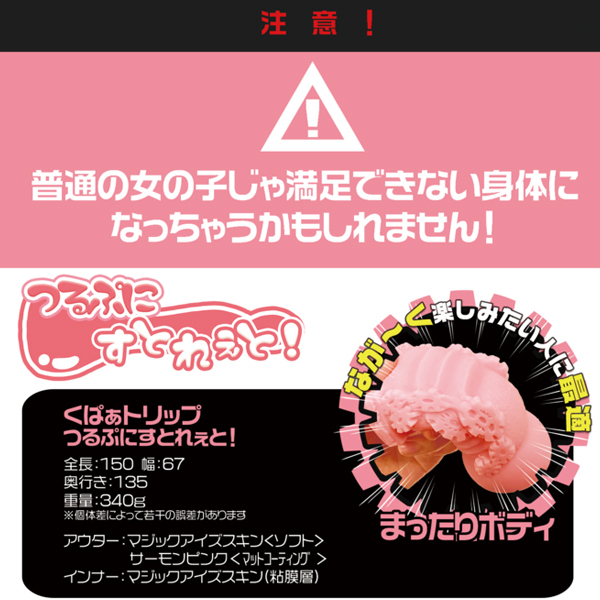 実用性に特化した「くぱぁトリップ」シリーズに新作登場!片手で扱いやすい340g設計で、外はむっちり柔らかく、中は溝無しツルツルなストレート構造♪ねっとり柔らかな膣壁が全体を包み込み、蕩けるような快感を与えます。