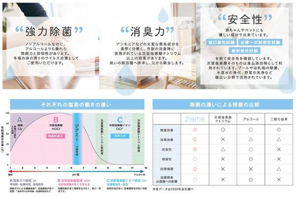 水道水に混ぜて溶かすだけ!いつでも新鮮な次亜塩素酸が作れる顆粒タイプの除菌&消臭液「ジアミー」。