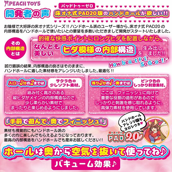 肉厚感を重視し一穴で設計!前半3分の2は桜色の絡むように柔らかい素材を、残りの部分には高弾力な素材を使用したハイブリッド仕様♪素材の質感とヒダ模様で的確に刺激します。