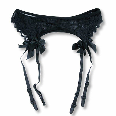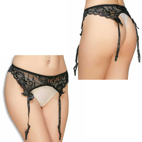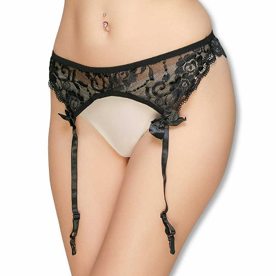 > 定番人気のフラワーレースガーターベルト (ブラック)