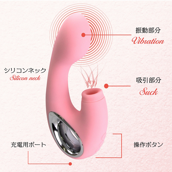 女性に人気のクリ吸引機能と膣にピタッとハマるオルガ系バイブの2つの機能を兼ね備えた例の吸引系バイブ!吸引パターンは5段階。