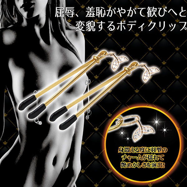 ニップルやラビアに使って屈辱と羞恥を歓びへと昇華せよ!カラダの敏感な場所へ響く痛みは快感へと変貌する♪身体が身悶えるたびに揺れるチャームが羞恥心を刺激する!クリッピングプレイに必須のBDSMボディクリップです♪