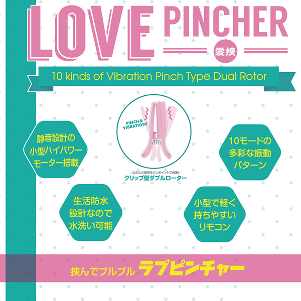 挟んでブルブル超小型モーターを搭載した軽量ローター「ラブピンチャー」です。