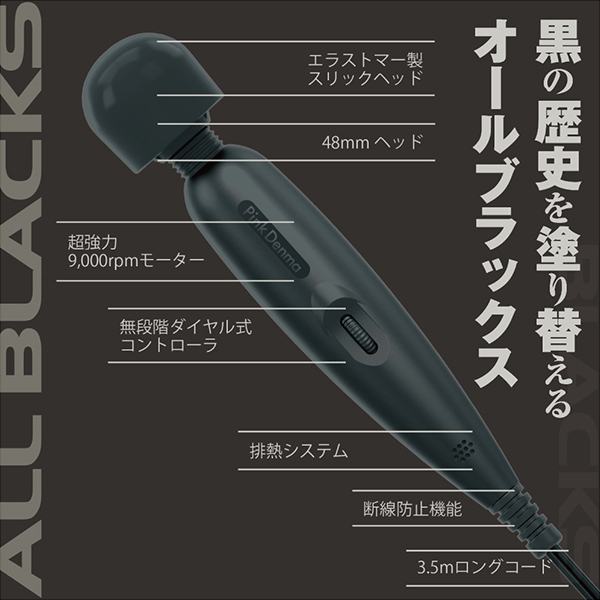 高級なマットブラックから醸し出される圧倒的な重厚感と存在感♪人気、実力ともにナンバーワンのピンクデンマゼロで実証された高性能デンマが黒の歴史を塗り替える!高級感と高性能を併せ持った黒い電マ♪延長コードが不要な3.5mロングコード!寝落ちもできる長時間の連続稼働と柔らかなコードガードで断線防止も。