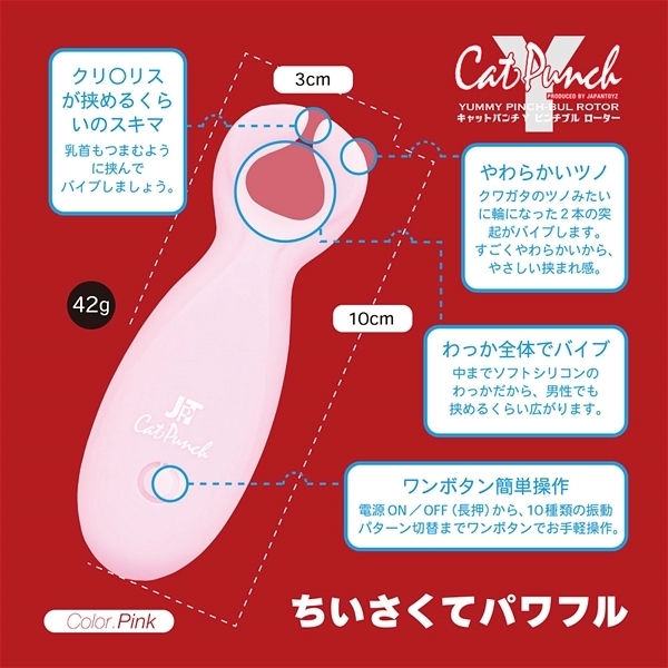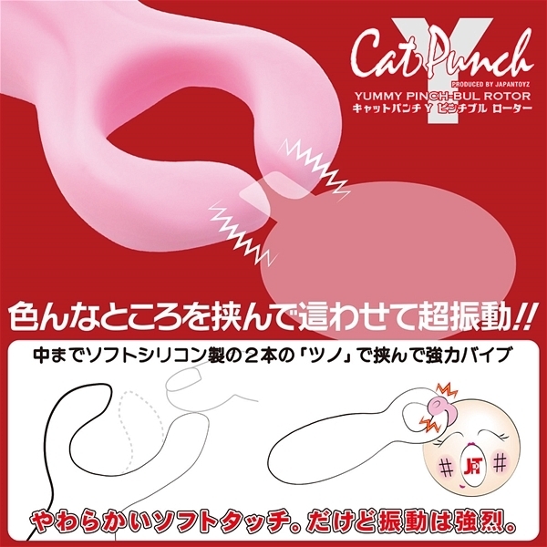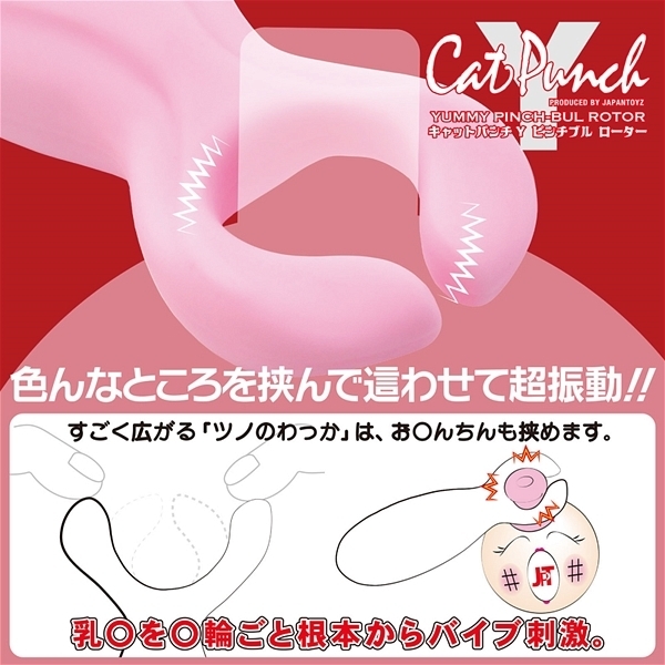 コンパクトサイズでポケットに入れても邪魔にならない小ささ(42g)に、強力なマイクロローターを内蔵しました!クリトリスが挟めるサイズにデザインされた、クワガタみたいな「やわらかいツノ」が強力に振動します♪ツノを使っての乳首やクリへの刺激が気持ち良い!セルフはもちろん、カップルでのプレイにもおすすめ!乳輪を囲えるように湾曲した「やわらかいツノ」は、乳首の性感開発にも適していますよ♪電源はUSB充電式。