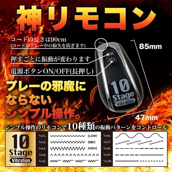見た目はオブジェのような形状!NOVAシリーズの中でも一番激しいトリッドなアイテムの「バックファイアーNOVA TORRID」です♪入り口は25mmとこれまでのNOVAシリーズの一番太い部分を超えるレベルの太さで最大径は30mm!張り巡らされた縄模様の凹凸が刺激を繰り返しながら角度や向きによっては、また違った快感と刺激を味わわせてくれます♪カラーはシックなブラックでハミ出る肉感的な部分が挿入のアクセントになっています!強弱含め10種の振動機能を備え、単4電池3本で駆動するお手軽さも人気です♪