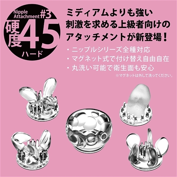 個性あふれる5種のアタッチメントを、両乳首に使えるよう、すべて2個ずつご用意。