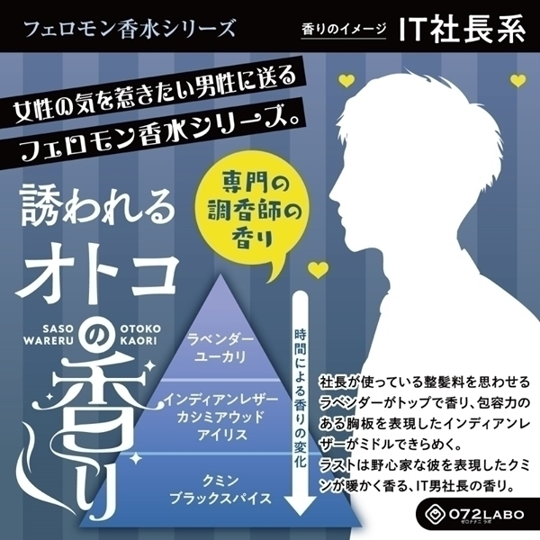 ●IT社長:社長が使っている整髪料を思わせるラベンダーがトップで香り、包容力のある胸板を表現したインディアンレザーがミドルできらめく。