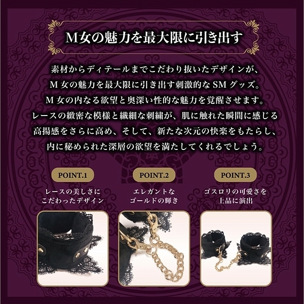 高級感あるベロア生地とレースで飾りつけた心の奥のM願望を刺激してください。