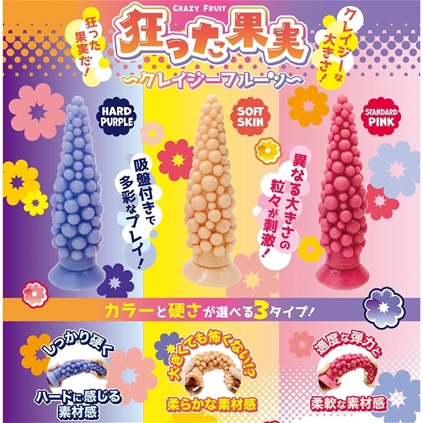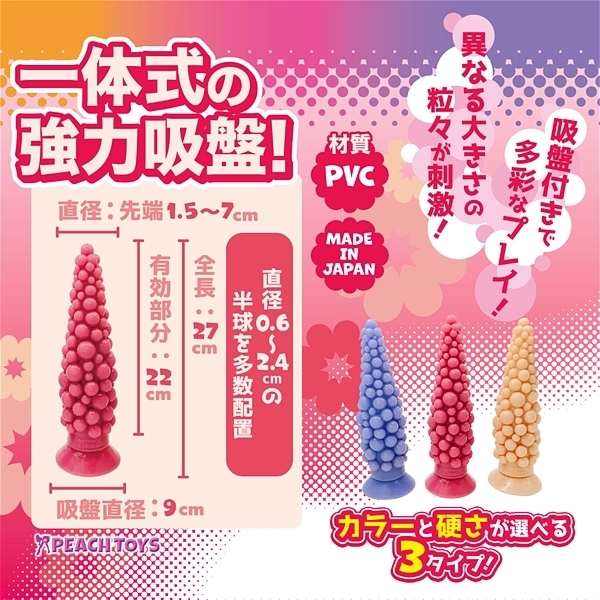 先端は小さく、段々と広がる円錐形状に大きさの異なる粒々がランダムに配置!直径0.6〜2.4cmの半球を多数配置●カラーと硬さが選べる3タイプ!柔らかな素材感!<スタンダードピンク>ピンクのスタンダードタイプ。