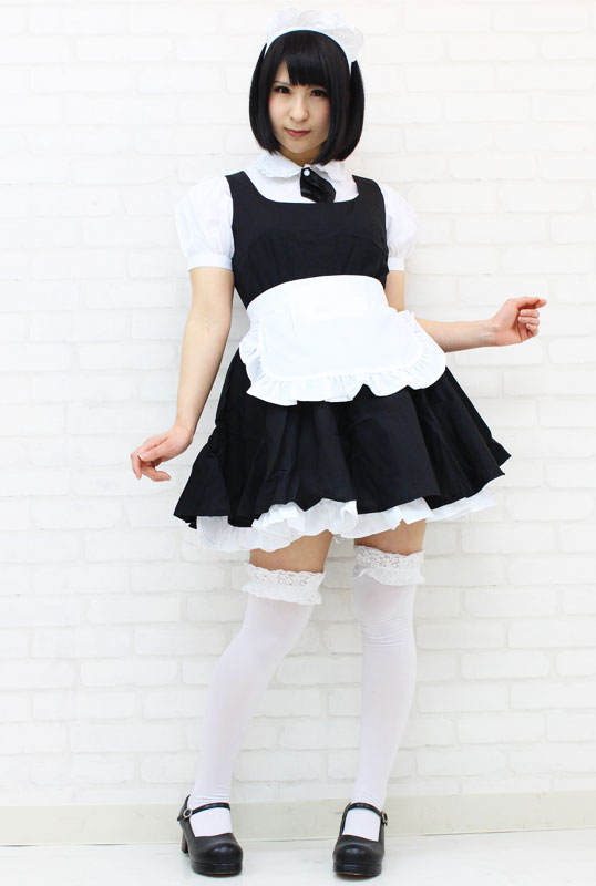 セット内容:ブラウス、タイ(ナップボタンにて取り外し可能)、ワンピース(背中ファスナー)、エプロン、カチューシャ