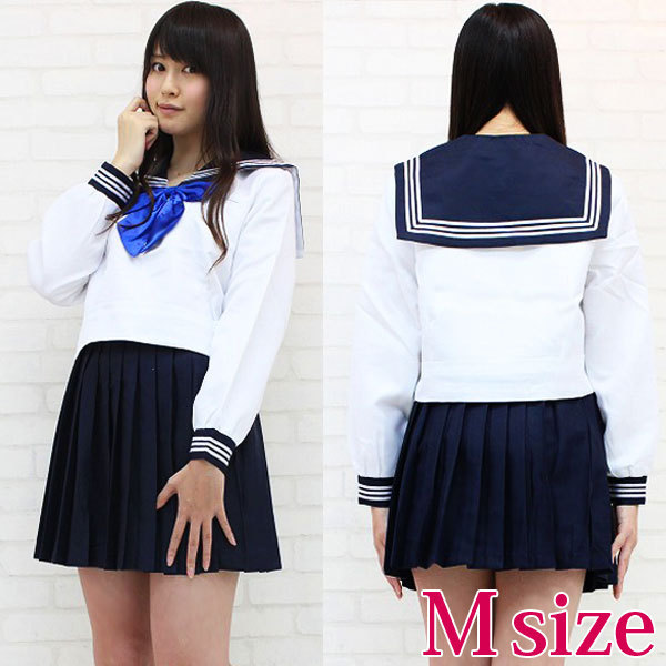 青いリボンが爽やか!春・秋仕様のキュートなセーラー服コスプレ。