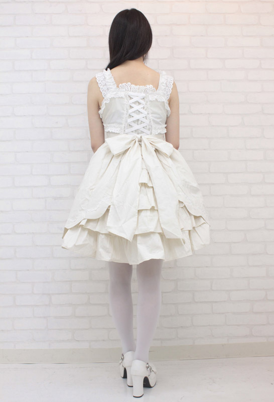セット内容:ジャンパースカート(横ファスナー、後ろ編み上げシャーリング)・リボン(ピンにて取り外し可)