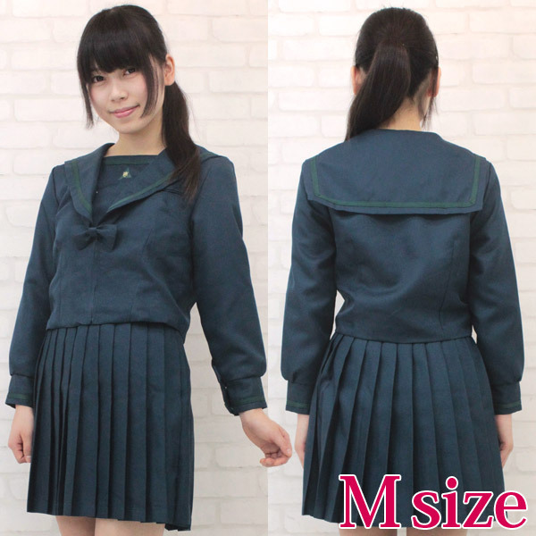 憧れのお嬢様風制服コスプレ!緑のラインが入った可愛らしい冬服セーラー服(M)。