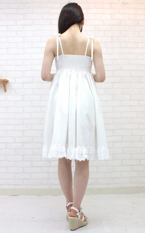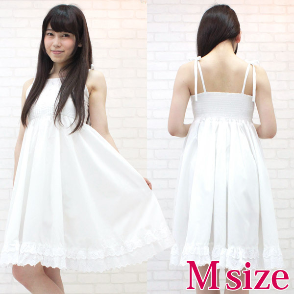 肩の上で可愛くリボン結び!真夏の太陽がとっても似合う、白ワンピース(M)。