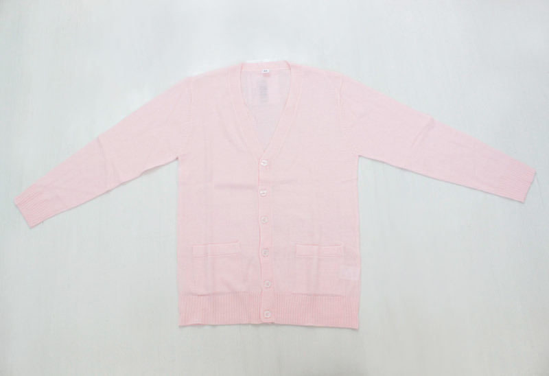 いつもの制服コスチュームがもっと可愛くなっちゃう!淡いピンクが可愛い王道のニットカーディガン。