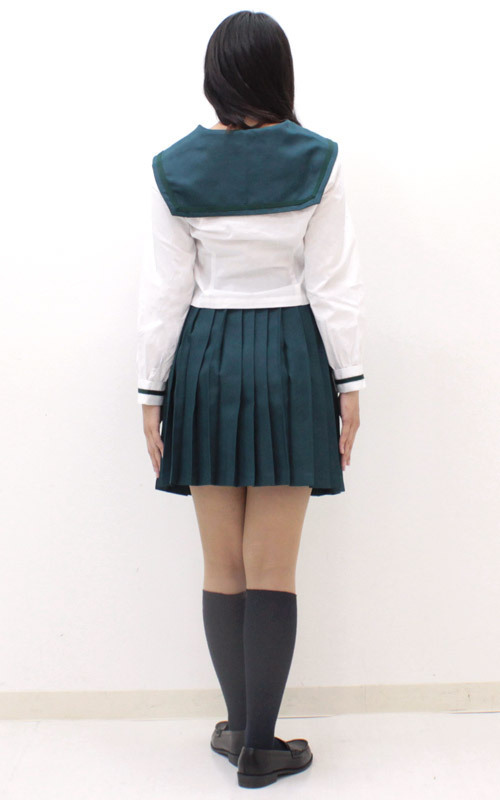 黒でも紺でもない落ち着いた緑色が新鮮!白い部分とのコントラストが映えるセーラー服。