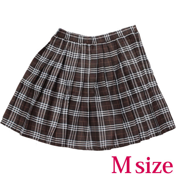 秋冬にもぴったり!落ち着いたブラウンチェックのプリーツスカート単品(Mサイズ)。