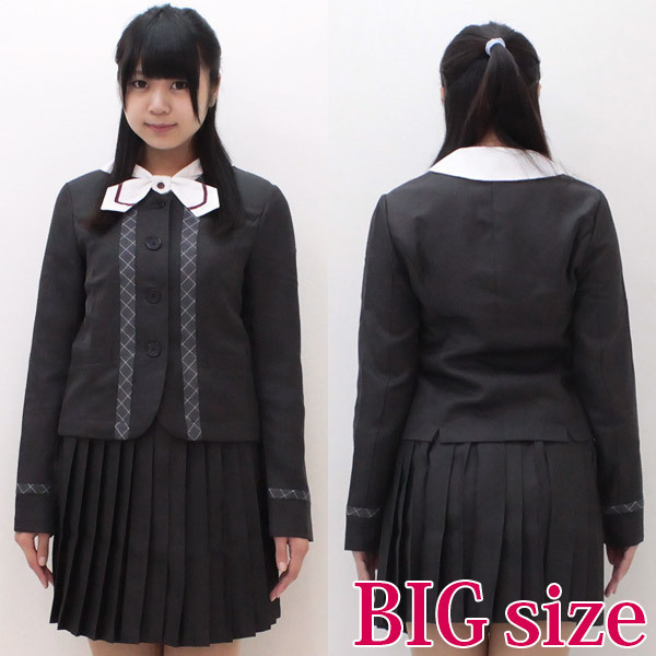本物と区別がつかないほど、クオリティーの高い仕上がりに誰もがビックリ!フロントのチェックラインがとっても可愛い冬用の制服コスチュームに、男女兼用で着られるBIGサイズが登場しました。