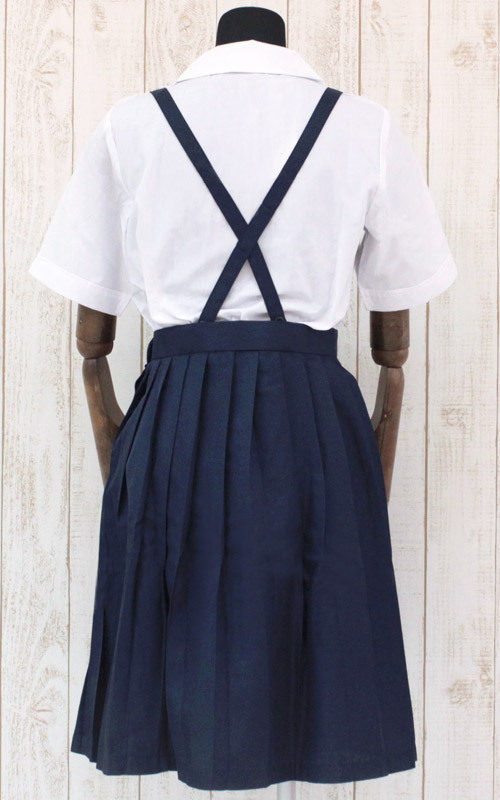 セット内容:上衣シャツ、吊りスカート(三段ホック)、紐タイ 素材:上衣シャツ(ポリエステル65%綿35%)、スカート(ポリエステル100%)