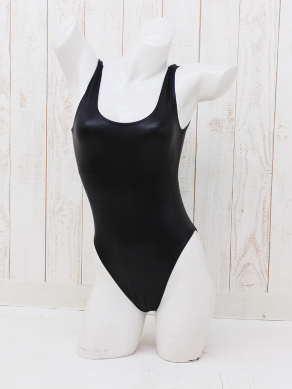 ●COOLな黒無地仕立て・ボディラインに沿ってセクシーにツヤめきます●肩紐が太いラウンドネック●足ぐりを大きくカットしたハイレグデザイン●裏地つきでしっかりと縫製してあります。