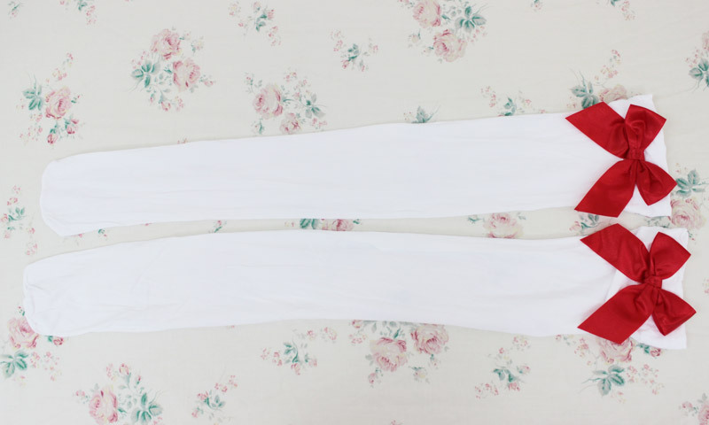 > リボン付きニーハイ 白×赤リボン