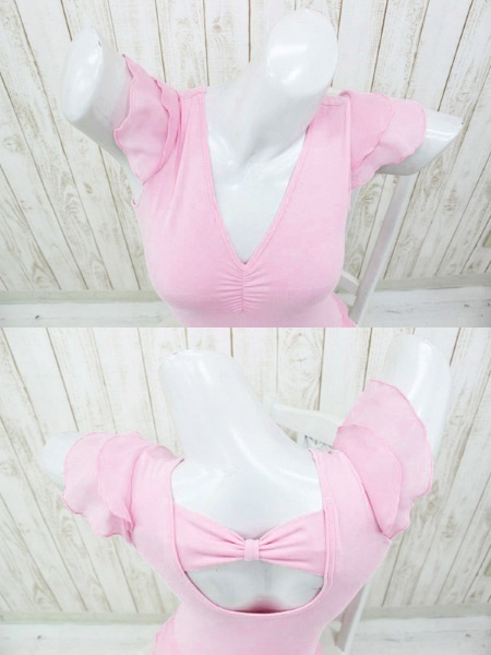 ピンクのレオタードをフリルとリボンで飾ってラブリーに!可愛さを目いっぱい詰め込んだ王道デザインのバレリーナコスチュームです。