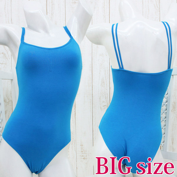 ●鮮やかな青空色レオタード●シンプルなキャミソールデザイン●肩紐はダブルストラップ仕様●胸部中央でシャーリング調節可●前面当て布仕様で安心。