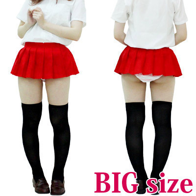 ビビッドな赤スカートで目立ち度バツグン!超マイクロミニ丈の無地プリーツスカート(BIGサイズ)。