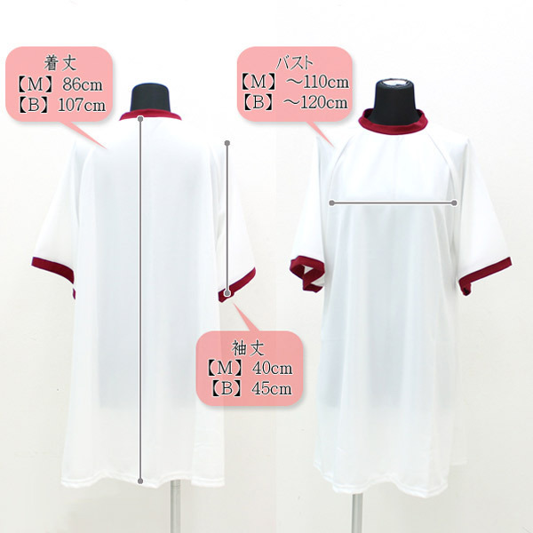 BIGサイズ:B〜120cm 着丈107cm 袖丈45cm 素材:ポリエステル65%、コットン35% 体操着ルームウェア 色:エンジ