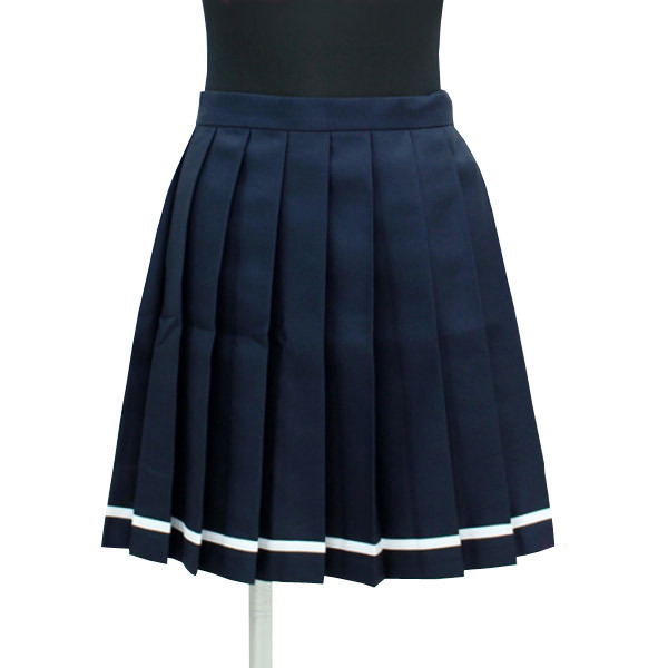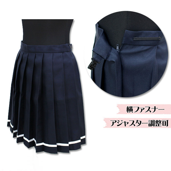 セット内容:スカート単品(横ファスナー、アジャスター調節可) 素材:ポリエストル100% 無地プリーツスカート単品 色:紺×白ライン